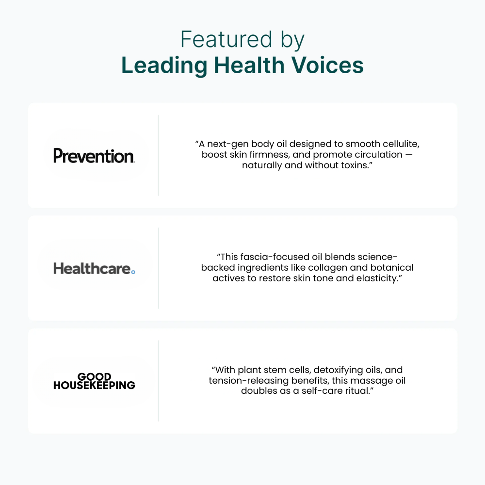 Our Massage Oil isn’t just another body product — it’s inspired by clinical research in fascia therapy, lymphatic drainage, and collagen stimulation.